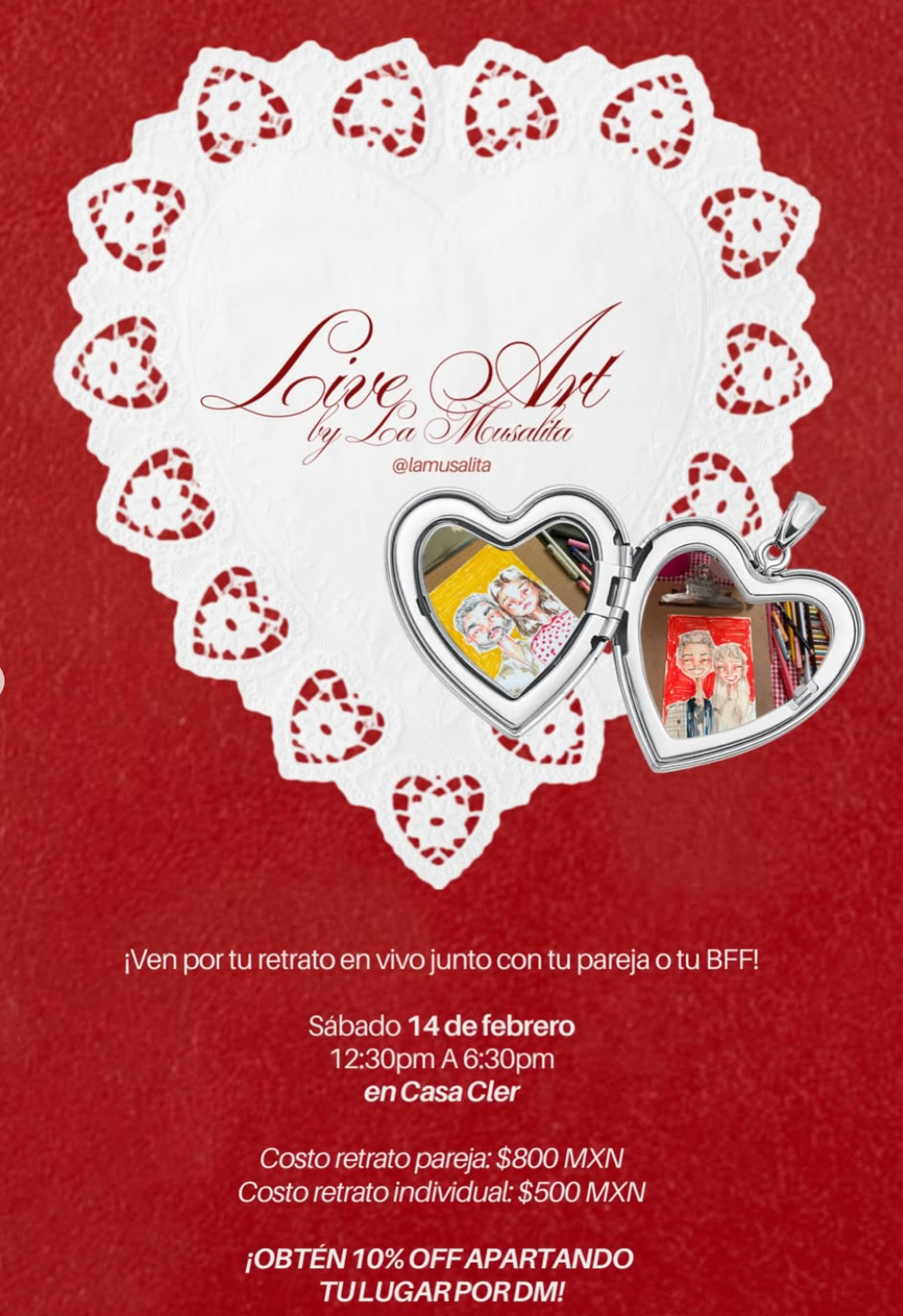 El 14 de febrero estaré en CASA CLER haciendo retratos de Live Art de 12:30 a 6:30 pm.